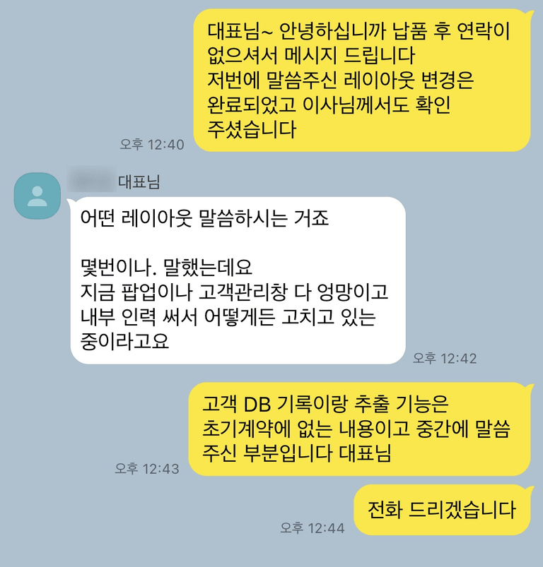 “계약상 납품이 완료되지 않았습니다. 하자도 많고, 지금은 저희 내부 개발자가 소스 코드를 뜯어고치고 있는 상황입니다. 당연히 잔금은 지급할 수 없습니다.”