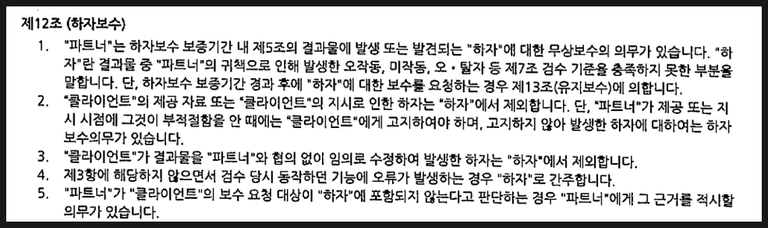 "하자로 간주", 개발사에서 하자가 아니라는 "근거를 적시할 의무"를 정하고 있는 등, 상당히 개발사에 불리한 하자보수 조항이었습니다.