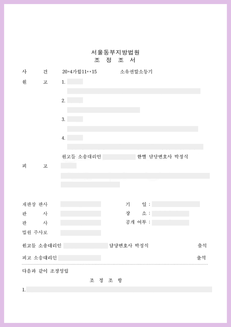 망인의 유언에 원인 무효 사유는 없으나 피고의 특별수익이 원고들에 비해서 지나치게 많다고 보아 원고들의 유류분부족분이 발생하였다는 전제하여 원고들과 피고 사이에 피고가 원고들에게 금원을 지급하고, 상속세금은 모두 피고가 부담하는 것을 조건으로하는 내용의 조정이 성립되었습니다.