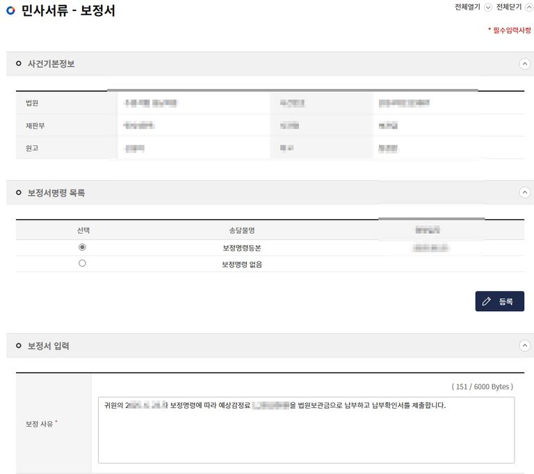 3. 법원 보정서 제출