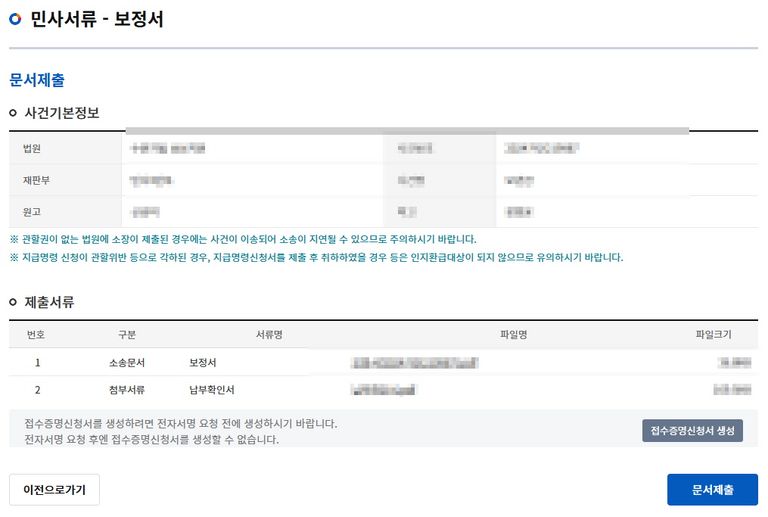 최종적으로 제출되었는지 확인해 줍니다. 전자소송의 제출서류 목록을 확인해 보시기 바랍니다.