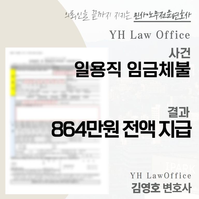 일용직 임금체불 → 결과 : ‘864만원’ 전액 지급