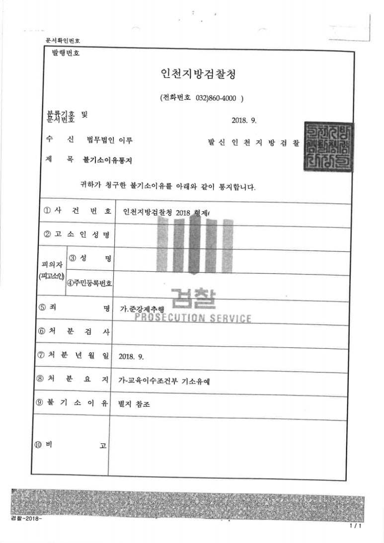 담당검사가 사건을 교육이수조건부 기소유예 처분하였습니다.