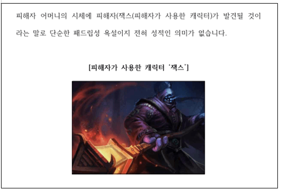 게임에 대한 지식을 바탕으로 op.gg에서 피해자가 현재까지 게임을 하고 있음을 증거로 제출하였고,