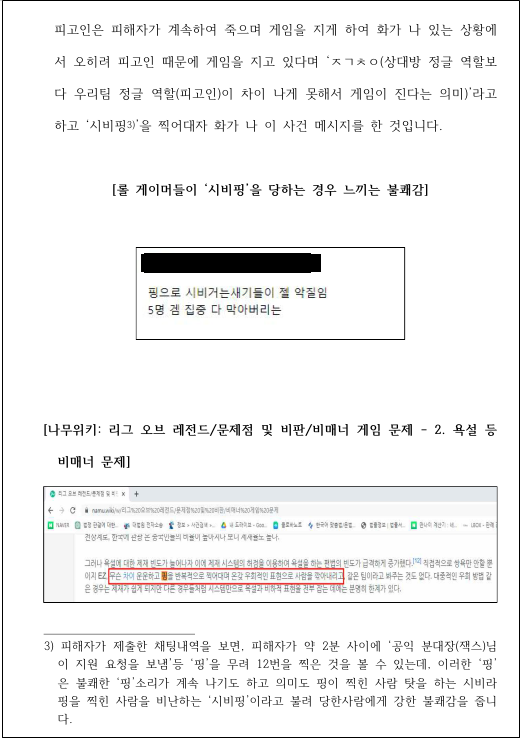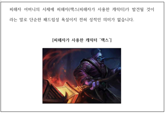 ② 행위의 동기와 경위 : 대부분의 수사관, 검사, 재판장들은 게임을 모릅니다. 따라서 게임의 특성을 설명하며 어떠한 동기와 경위로 해당 발언이 ’욕설‘조로 나오게 된 것인지 구체적으로 설명해야 합니다.
