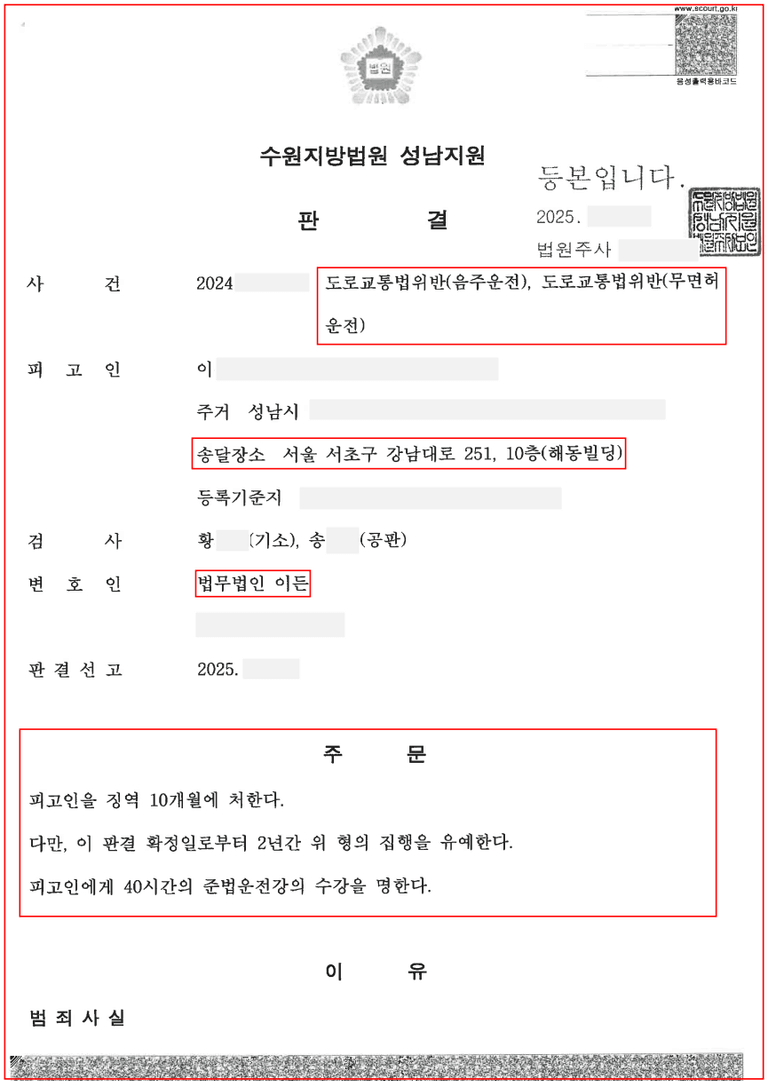 물론, 의뢰인이 벌금형을 선고받고 무면허 상태에서 또다시 음주한 부분에 대해서는 크게 반성하고 있다는 점도 강하게 피력했습니다.