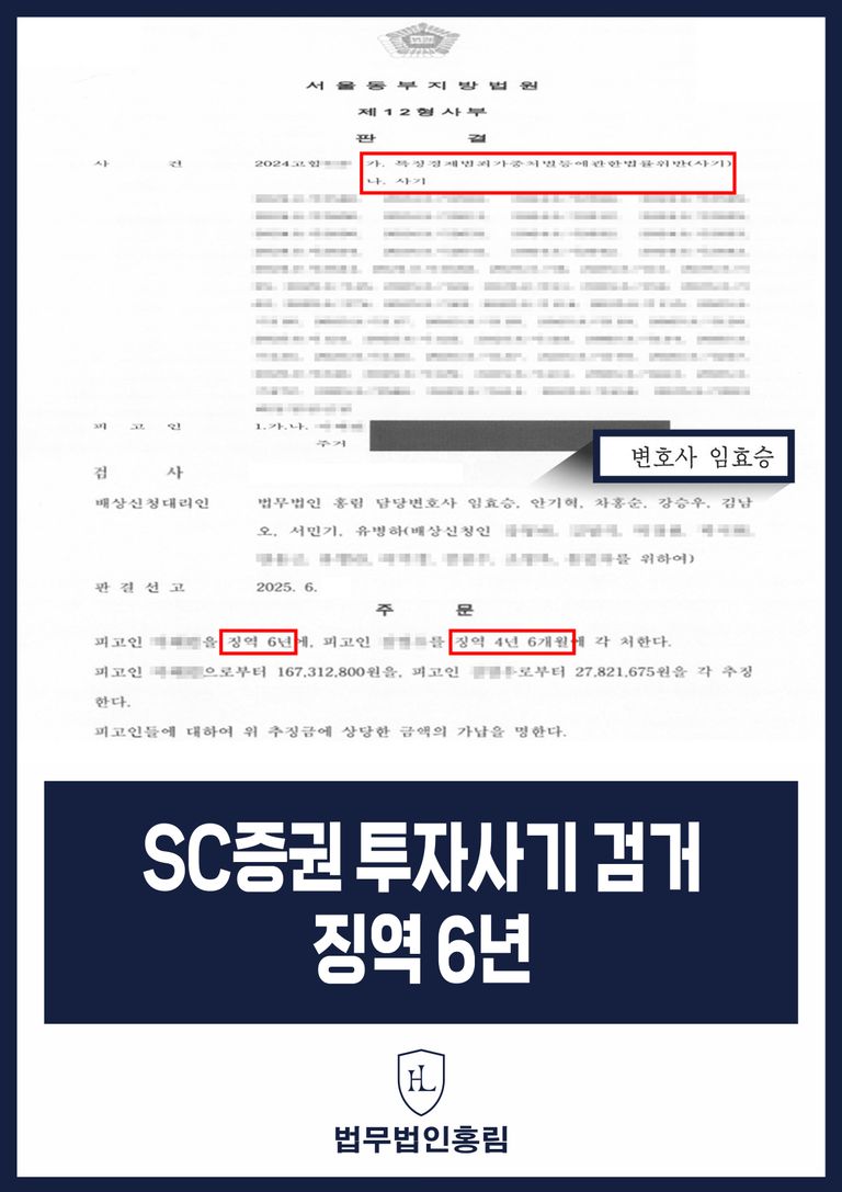 법무법인 홍림은 앞으로도 SC증권을 사칭한 사기와 같은 지능형 금융범죄에 대해 단호하고 체계적인 대응으로 피해자들의 권리를 회복해 나갈 것입니다.