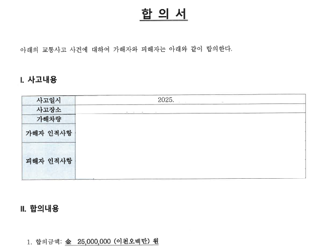 합의서의 내용에 따라 상대방 보험사로부터 보험금을 받지 못하는 경우도 발생할 수 있습니다.