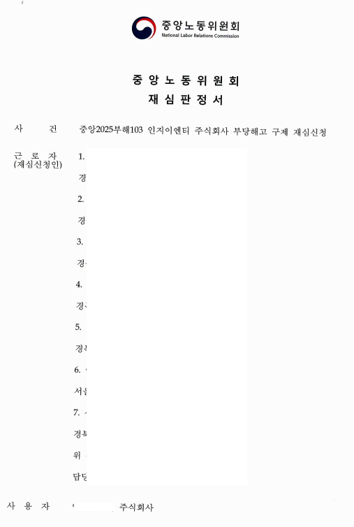 신청인들은 산업재해 사고 이후 회사가 충분히 안전배려의무를 다하였음에도 불구하고 출근명령을 어기고 무단결근을 하여 해고되었고, 이에 대해서 부당해고라고 주장하며 초심(경북 지노위), 재심(중앙노동위원회)을 제기하였습니다.