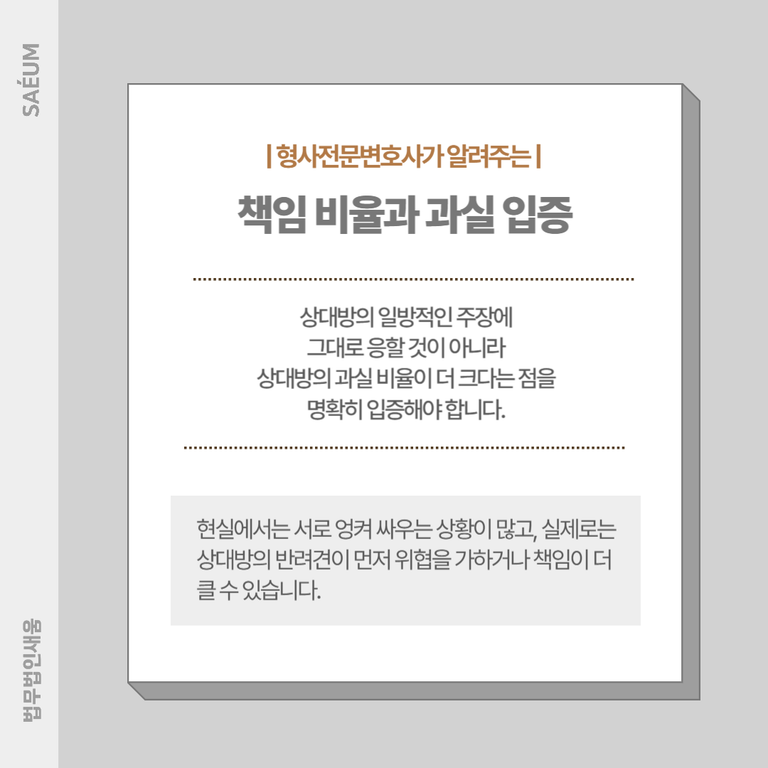 이러한 경우엔 상대방의 일방적인 주장에 그대로 응할 것이 아니라, 상대방의 과실 비율이 더 크다는 점을 명확히 입증해야 합니다.