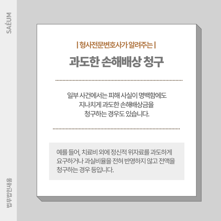일부 사건에서는 피해 사실이 명백함에도 불구하고, 지나치게 과도한 손해배상금을 청구하는 경우도 있습니다.
