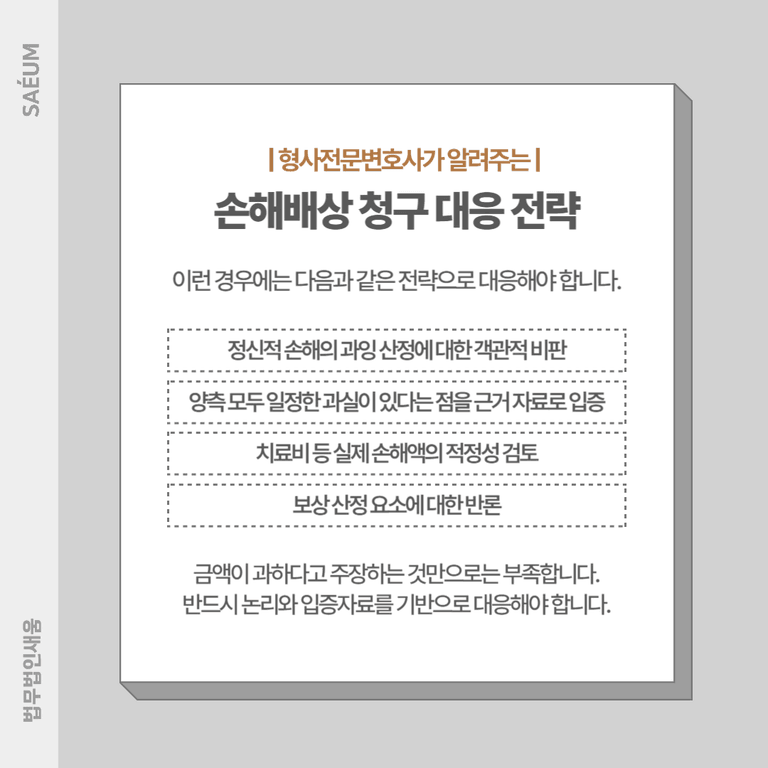 단순히 "금액이 과하다"고 주장하는 것만으로는 부족합니다. 반드시 논리와 입증자료를 기반으로 대응해야 합니다.