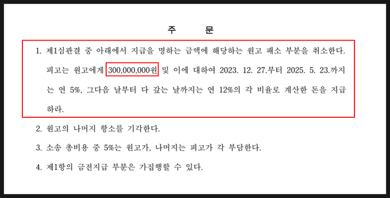 ⦁ 소송에 필요한 비용도 전부 부담했으며,