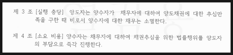 ⦁ 제4조 : "양수자는 채무자에 대하여