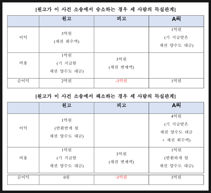 A씨(채권양도인)에게 2억 원의 추가 이익을