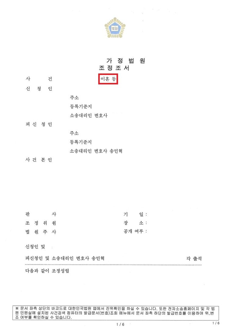아이들의 양육권자 및 친권자로 본인을 지정해달라는 취지의 조정 신청서를 보내왔습니다.
