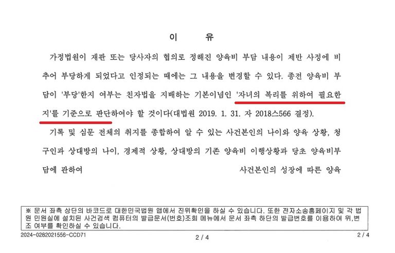 양육비 변경(증액) 소송을 청구하게 되었습니다.