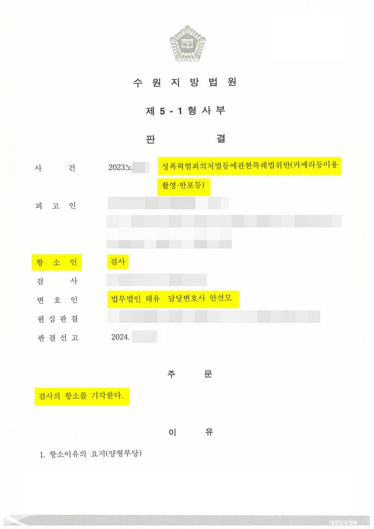 법무법인 태유 안선모 변호사 성폭법위반(카촬) 검사 항소 기각 성공사례