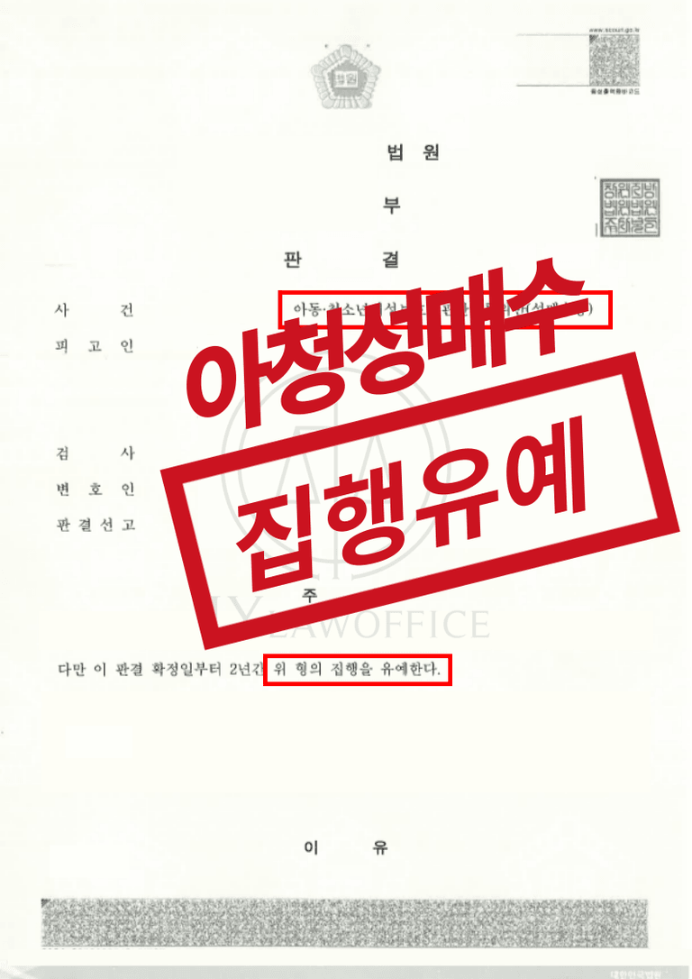 이와 같은 본 아청법 전문 변호사의 조력에 따라, 의뢰인은 사안의 중대성에도 불구하고 아청성매수 혐의에서 집행유예 를 선고받고, 무사히 사건을 종결시킬 수 있었습니다.