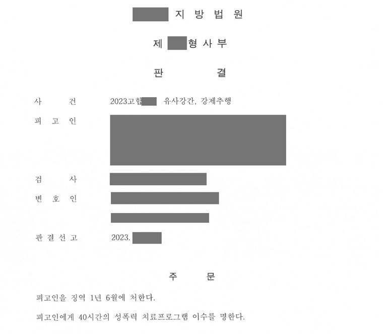 1심 형사 재판에서 가해자에게 징역 1년 6월 실형 선고 및 법정구속이 내려졌습니다.