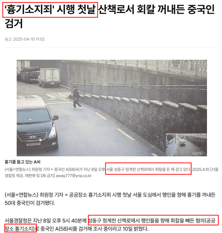 흉기를 들고 행인을 위협한 중국인 남성은 이 신설된 법률 덕분에 신속하게 검거되었고, 더 큰 비극적인 피해를 조기에 예방할 수 있었습니다. 개정법 시행 전이었다면 현장에서 적절한 조치를 취하기 어려웠을 상황이었죠.