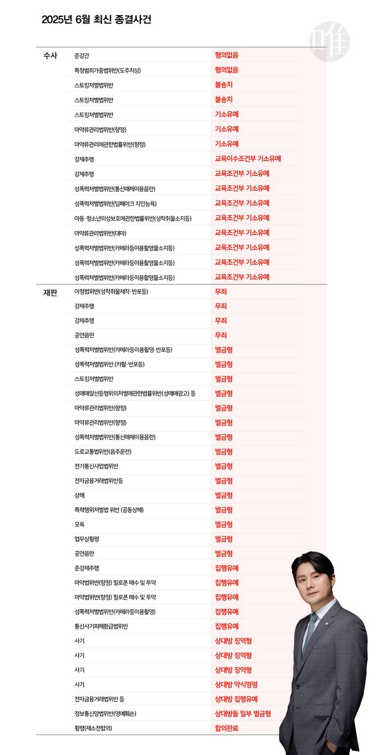 ✅ 무죄, 혐의없음, 기소유예, 벌금형, 집행유예 등으로