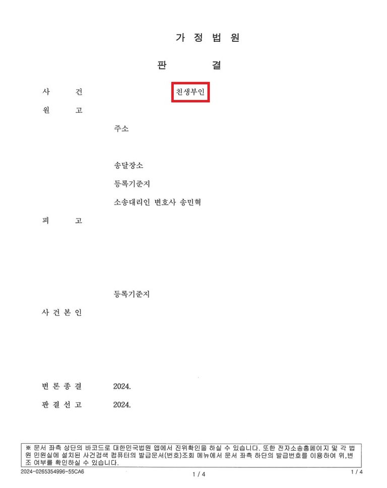 이를 바로잡기 위해 '친생부인의 소'를 함께 제기하였습니다.