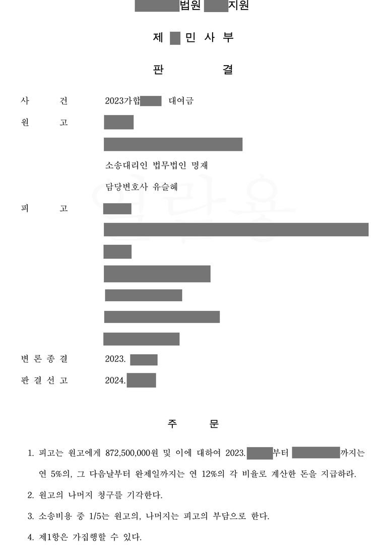 재판부는 총 8억 7천만 원의 대여금 전액과 이에 대한 지연손해금,