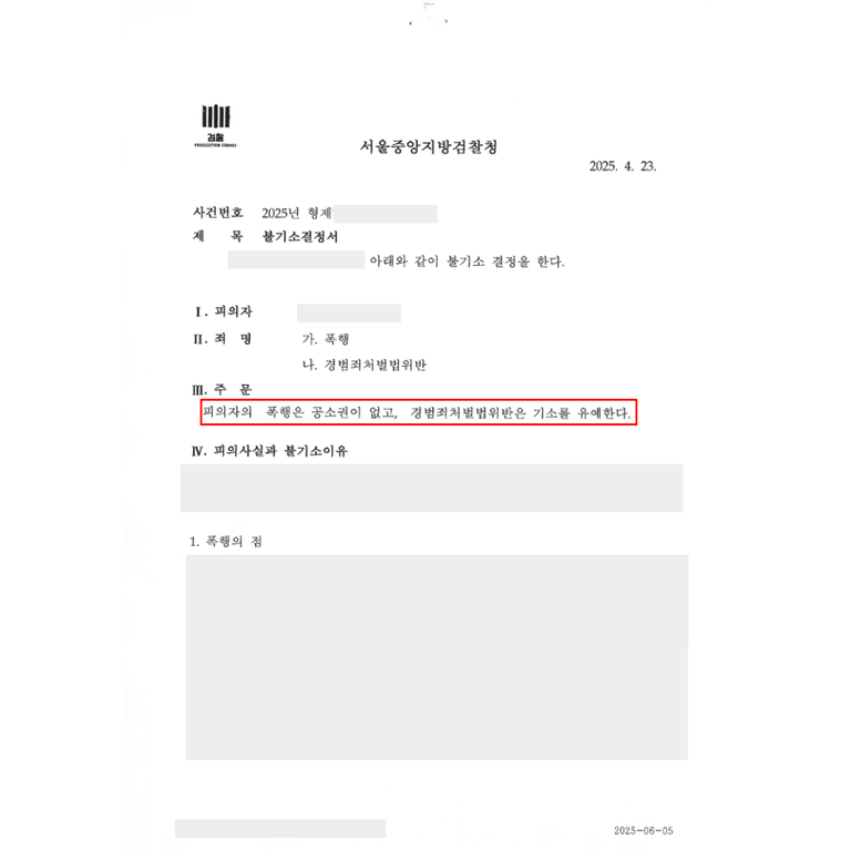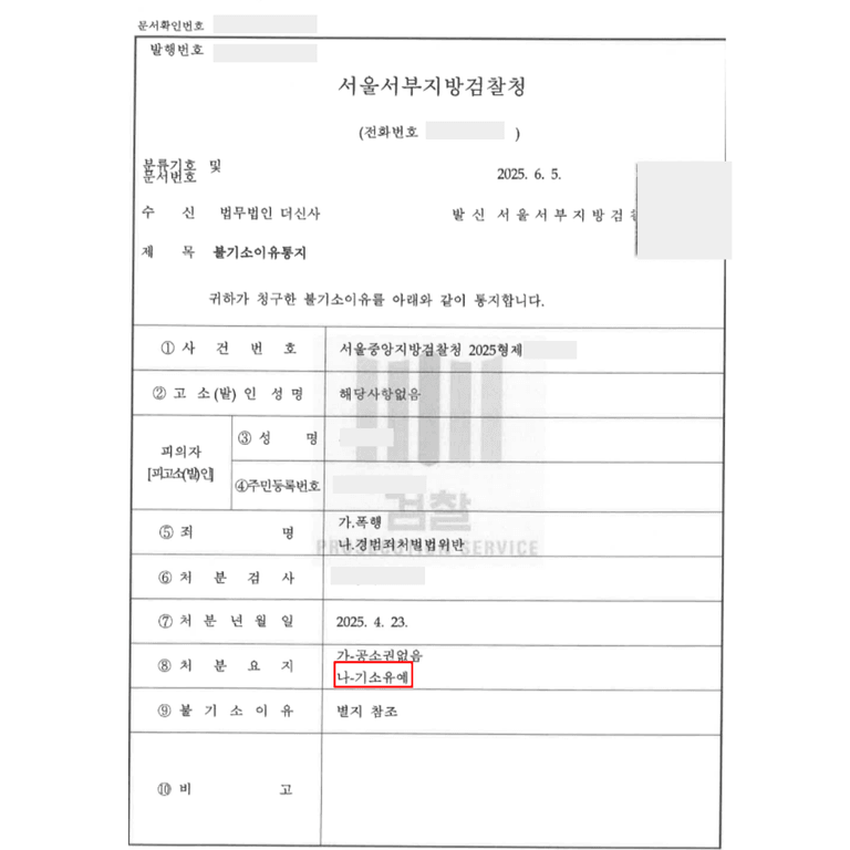 그 결과 형사재판 없이 사건은 종료되었으며, 전과기록 없이 사회적 불이익을 막을 수 있었습니다.