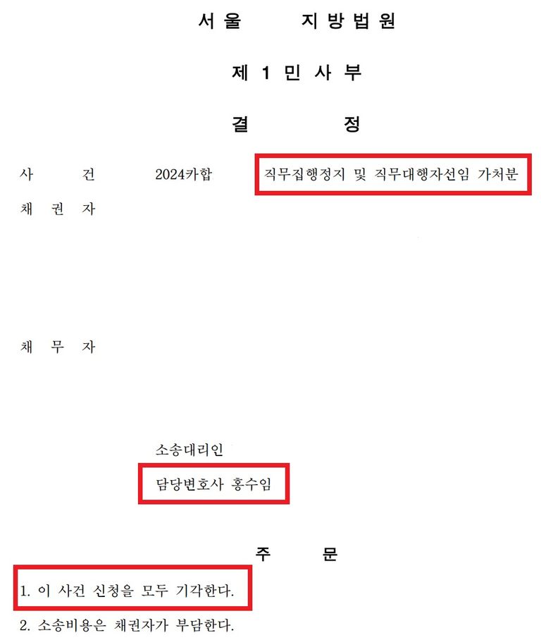 직무집행정지가처분을 신청했습니다.