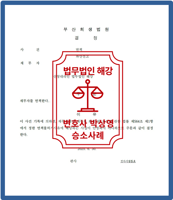 법무법인 해강에서는 법리적 검토와 준비서면등을 통하여 [면책] 결정 받았습니다.