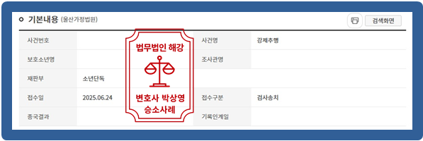 저희 법무법인 해강은 법리적인 검토를 통하여 의뢰인 상황에 맞춘 변호인 의견서 등 작성을 통하여 의뢰인을 위해 최선을 다하였고 이에 [가정법원 송치]을 이끌어냈습니다.