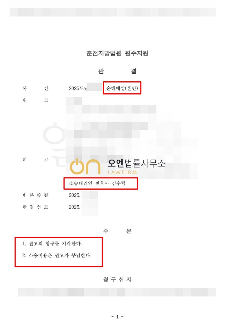 재판부는 담당변호사의 주장을 받아들여, 상대방의 청구를 전부 기각하였습니다.
