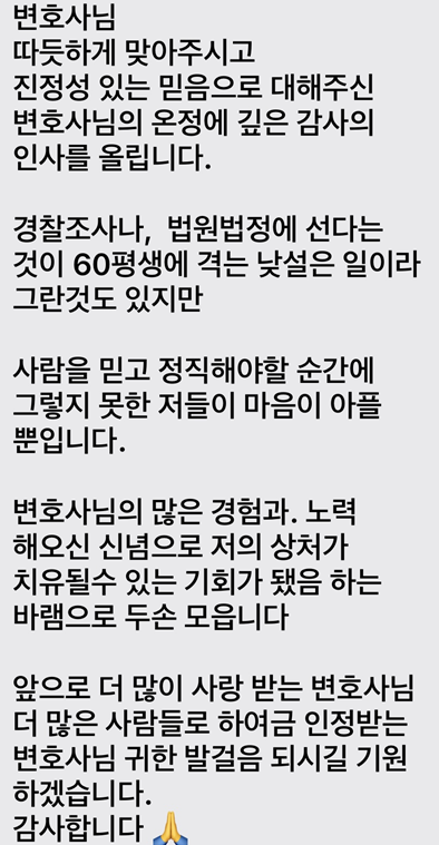 ✅ “변호사님 만난 것이 인생의 행운이다”