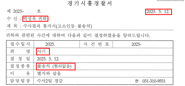 불송치 결정(혐의없음) 내려주셨습니다✨