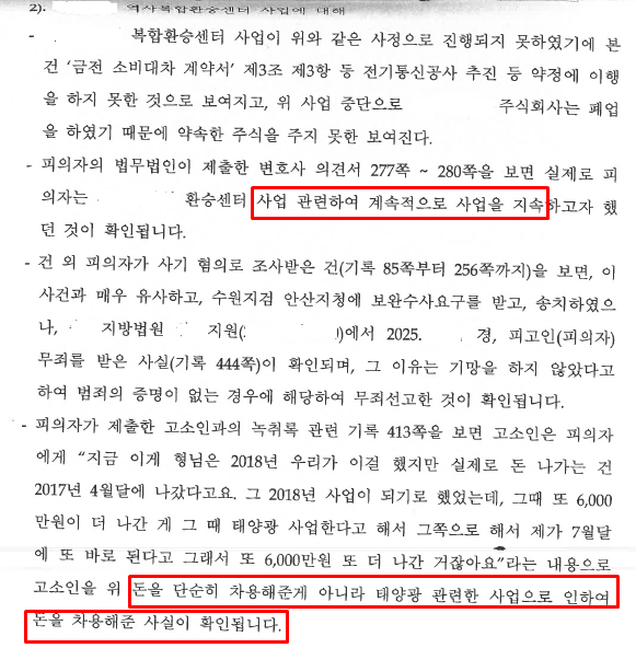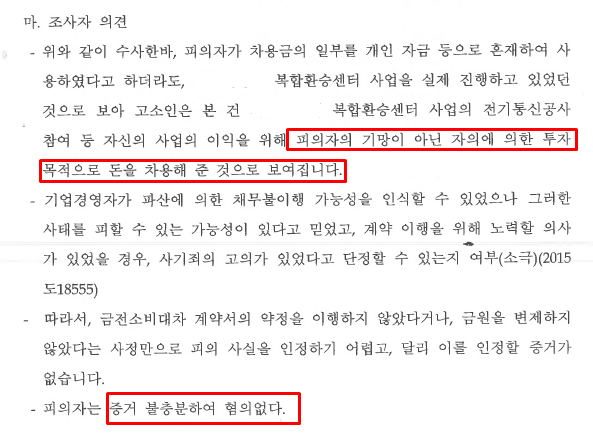 즉, 고소인들도 개발사업이 실제 진행 된다는 점을