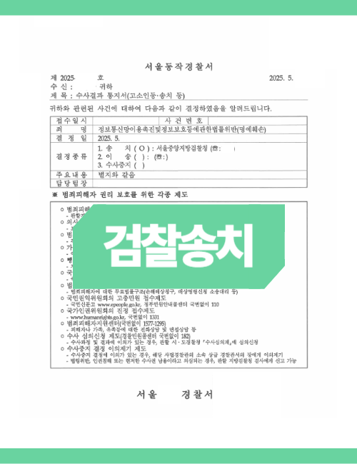 이와 같은 점들을 기반으로, B씨의 행위가 정통망법 위반에 해당함을 명확히 소명할 수 있었고, 그 결과 해당 사건은 검찰 송치 결정까지 이끌어낼 수 있었습니다.