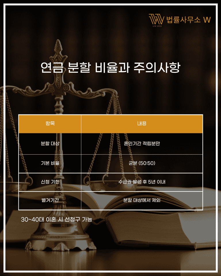 또한 협의이혼이나 재판 과정에서 재산분할 비율이 정해졌다면 그 비율을 기준으로 연금도 분할될 수 있습니다.