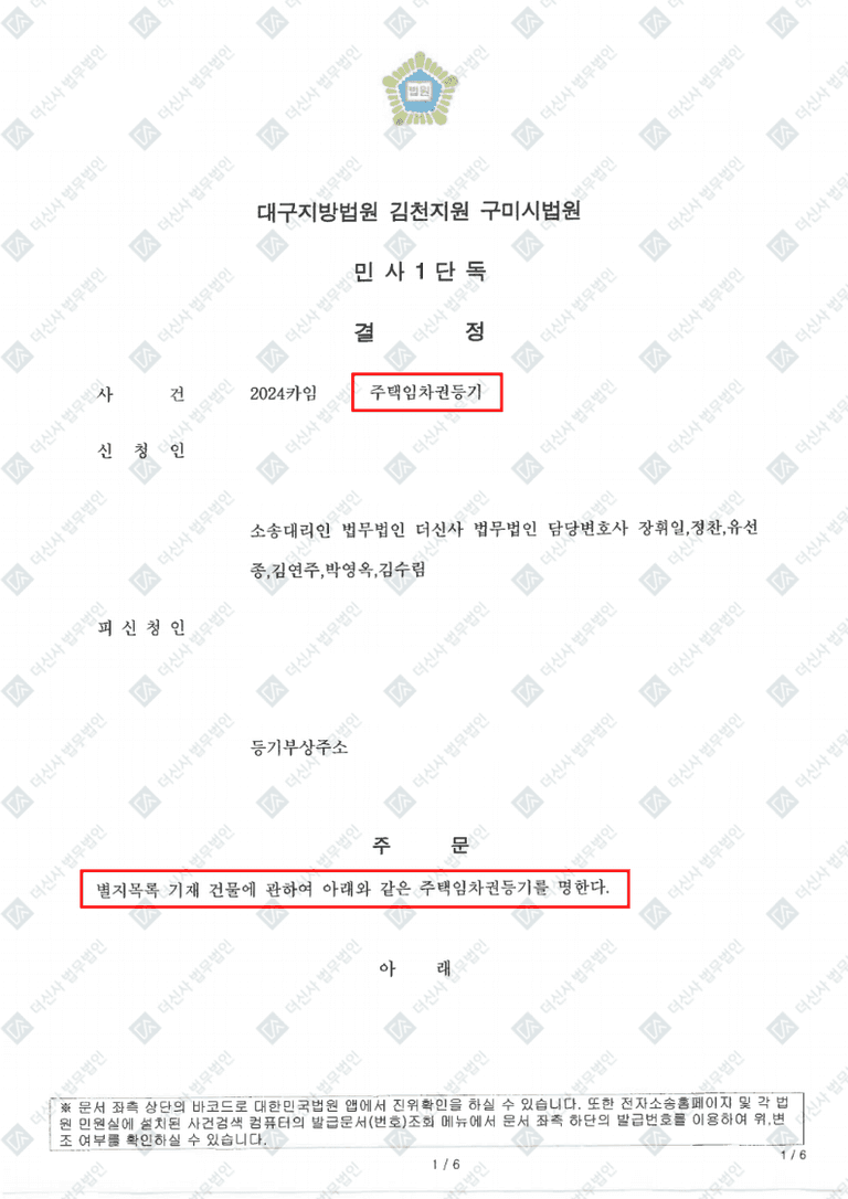 임차권등기명령 신청서 작성부터 법원 심리 대응까지 전 과정을 신속히 진행했습니다.