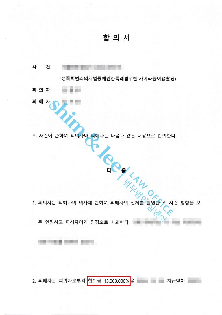 - 전자기기 포렌식 이후 불법촬영물이 실제로 확인되면서 사건을 빠른 속도로 검찰에 송치되었고, 가해자는 형사처벌에 대한 현실적인 두려움을 느끼며 모든 혐의를 인정하며 합의를 간정히 요청해왔습니다. 대표 변호사님은 이 사실을 즉시 의뢰인에게 공유하였고, 의뢰인은 정신적 피해에 대한 실질적인 보상이 전제된다면 합의에 응할 수 있다는 입장을 충분히 반영하여 합의 대행 업무를 직접 수행하였습니다.
