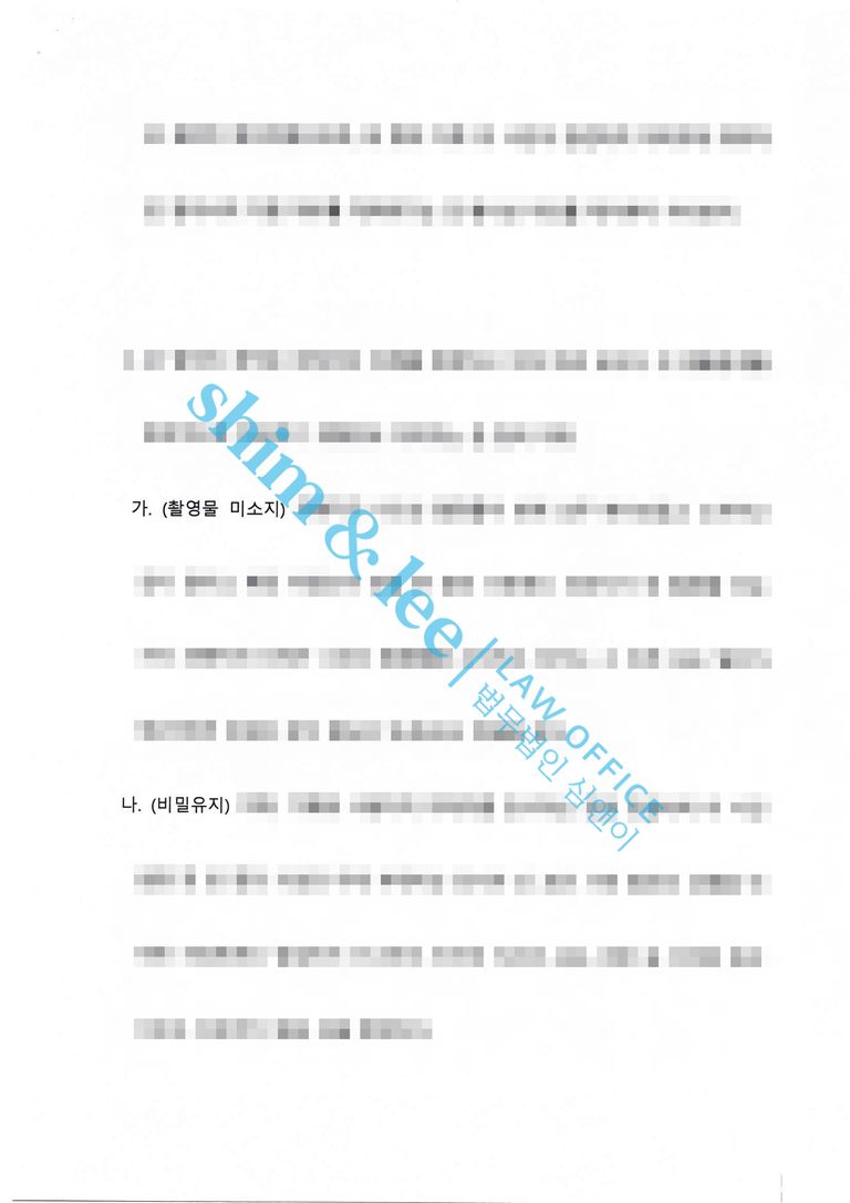 - 대표 변호사님의 단호한 대응에 압박을 느낀 가해자는 합의 결렬을 우려하며 단기간 내에 합의금 1,500만 원을 간신히 마련하였습니다. 이와 함께 촬영물 미소지, 비밀유지, 접근금지 및 통신 제한 등 2차 피해 방지를 위한 조항들을 포함해 의뢰인에게 유리한 조건으로 합의를 마무리하였으며, 가해자는 가까스로 기소유예 처분을 받게 되었습니다.