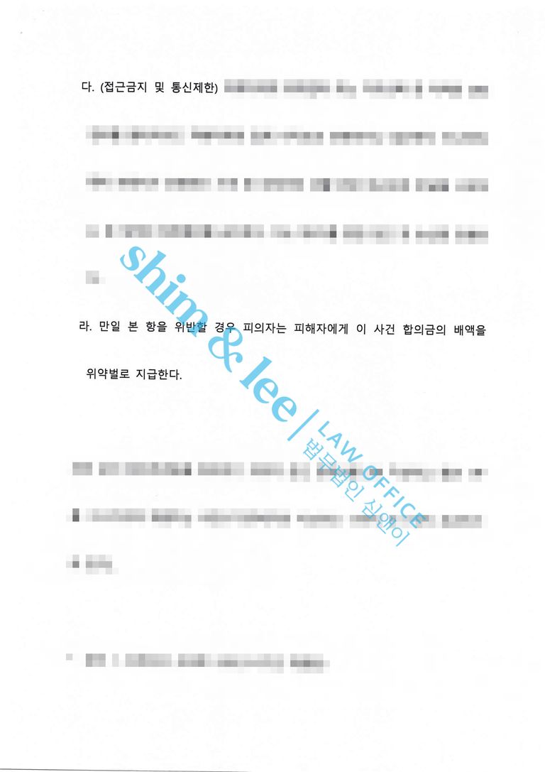 - 사건은 의뢰인의 의사에 따라 실질적인 피해 회복과 2차 피해 방지 조치가 충분히 반영된 조건으로 원만하게 마무리 되었습니다. 심앤이는 대표 변호사님이 합의 과정을 체계적으로 직접 진행하고 있습니다. 비슷한 상황으로 어려움을 겪고 계시다면, 심앤이의 풍부한 경험과 전문성을 믿고 상담을 받아보시길 권해드립니다.