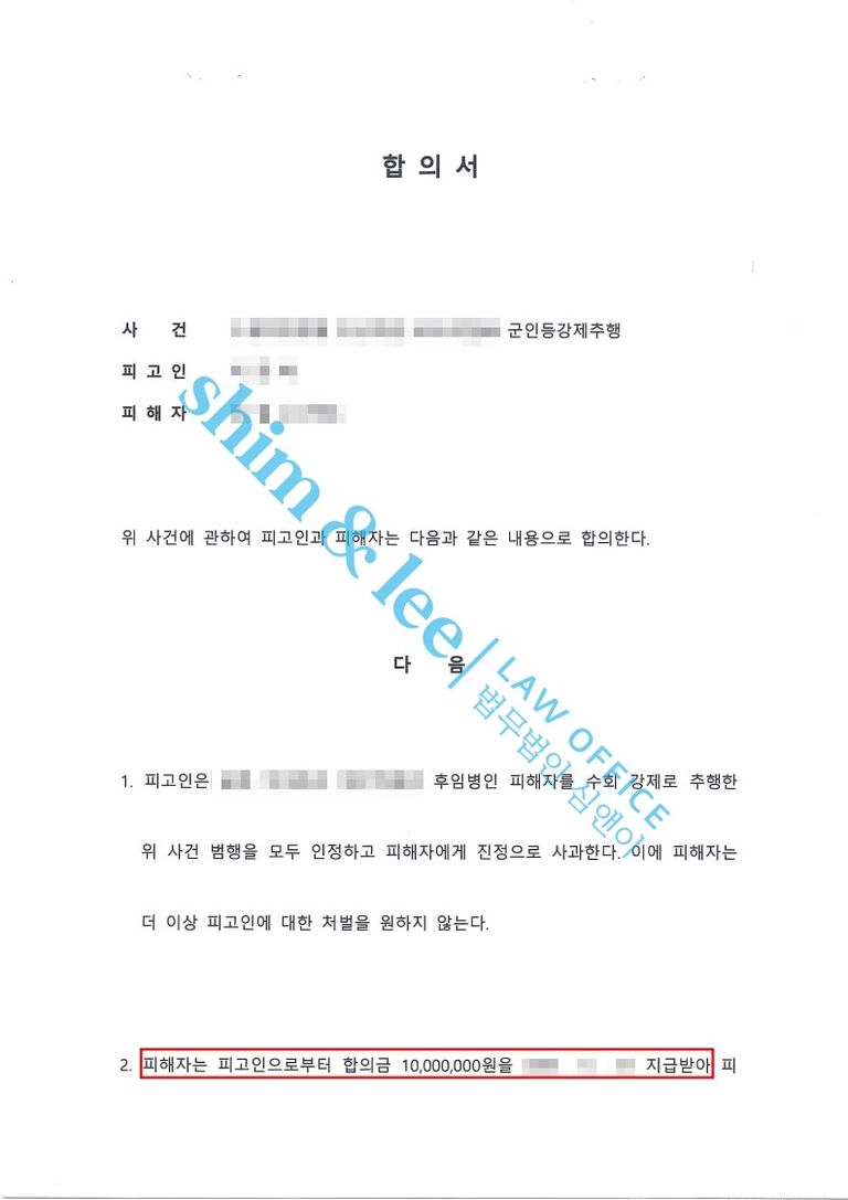 또한, 군형법 적용 가능성까지 고려할 때, 해당 금액으로는 절대 합의가 불가능하다는 점을 강조하며 피해자가 민사소송 진행을 결심한 상태임과 함께 곧 민사 소장을 접수할 예정임을 명확히 전달하였습니다.