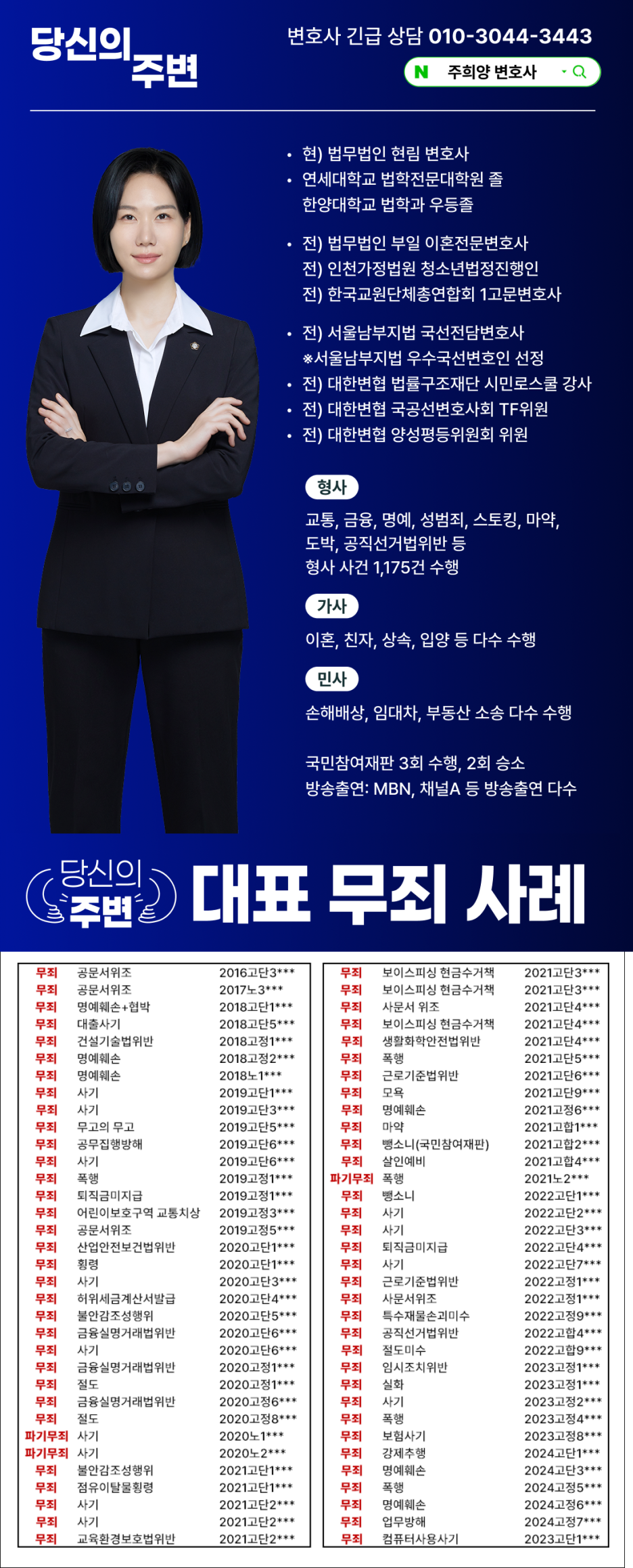 10년차 교통전문 주희양 변호사는 의뢰인의 곁에서 끝까지 함께하겠습니다.