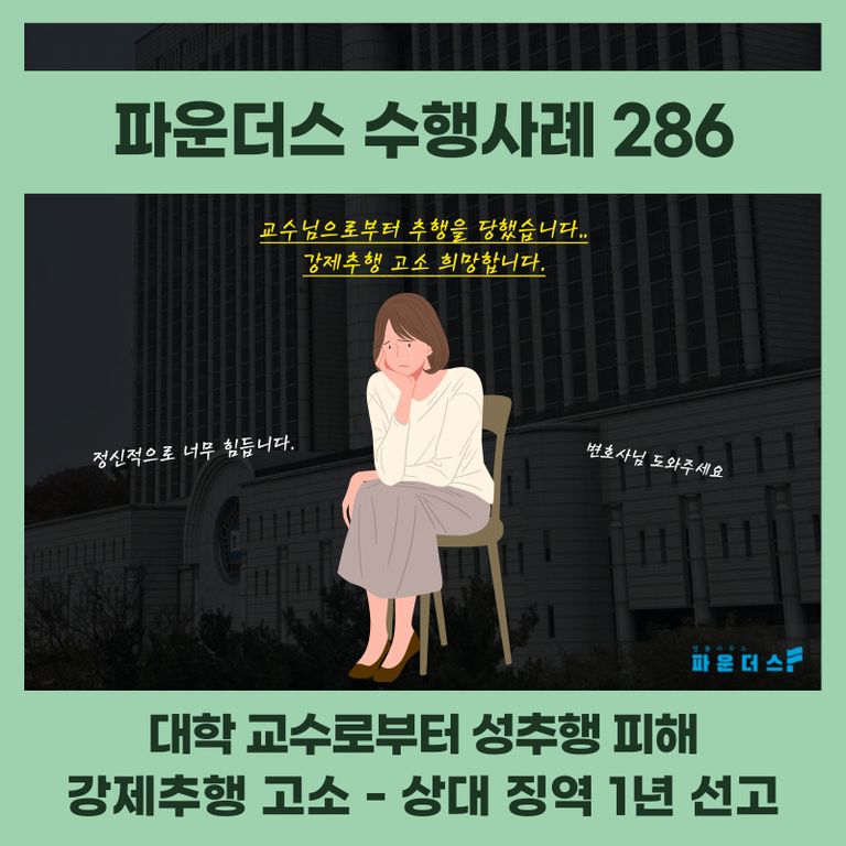 사건의 개요) 의뢰인은 대학교수로부터 2차례 추행당하여 강제추행 혐의로 고소를 진행하고자 변호인의 조력을 요청하였습니다.