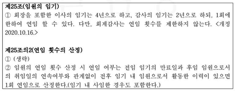 법원으로서는 사적 단체의 규정을 해석할 때, 그 규정의 제·개정 목적과 취지를 존중하여 해석하여야 한다. 그런데, 협회가 「선거규정」제25조의2를 신설한 것은, 상위 협회가 같은 내용을 담은「선거규정」25조의2를 신설함에 따른 것이므로, 상위 협회의 규정 개정의 목적과 취지를 중요하게 고려하여야 한다. 상위 협회에 대한 사실조회 회신결과에 따르면, 상위협회의 의도는, "특정 인사가 장기집권할 경우 발생할 수도 있는 조직의 사유화, 비리 등을 근절하기 위해, 임원의 연임제한 횟수 산정에 있어 규정 제25조의 제2항의 시행 이전의 임원의 경력도 대상경력으로 포함시키는 것"이다. 이를 존중하는 관점에서 볼 때도, 2020. 10. 시행된 협회의 「선거규정」을 이 사건 선거에 적용하는 것이 소급효금지원칙에 반한다고 할 수 없다.