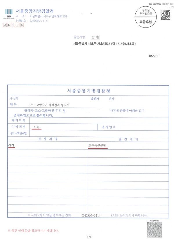 ※ 의뢰인님께서는 김준환 변호사를 선임하여 형사 고소 절차를 진행하셨습니다. 경찰, 검찰 과정에서 상대방의 사기죄를 판례와 법리를 통해 주장, 입증하여 처벌될 위기에 놓이게끔 하였습니다.