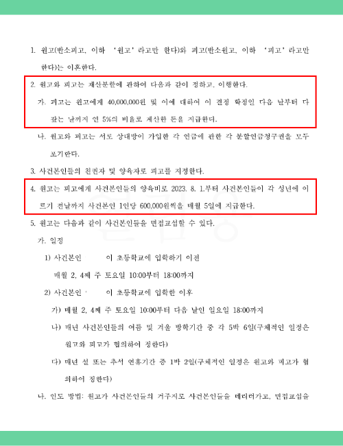 또한, 양육비에 관한 문제도 중요한 쟁점이었습니다. B씨는 정규직 근무 외에도 쿠팡배달업을 통해 추가 수입이 있는 상태였는데, 이를 반영하여 양육비를 산정해야 했습니다. 결국, 양육비는 월 60만 원으로 결정되었으며, B씨의 추가 수입을 고려하여 공정하게 산정된 결과였습니다.