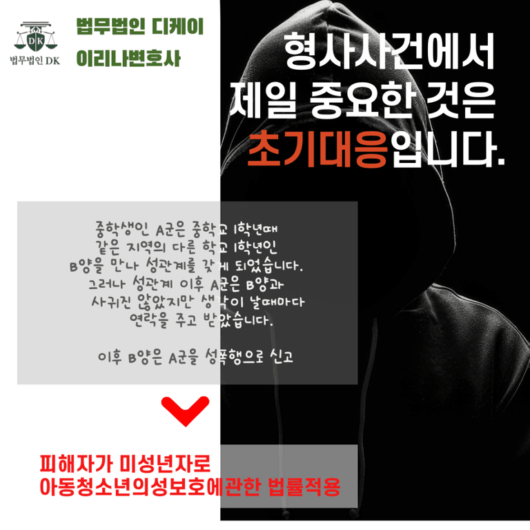 중학생인 A군은 중학교 1학년때 같은 지역의 다른 학교 1학년인 B양을 만나 성관계를 갖게 되었습니다. 그러나 성관계 이후 A군은 B양과 사귀진 않았지만 생각이 날때마다 연락을 주고 받았습니다. 이후 B양은 A군을 성폭행으로 신고하였습니다.