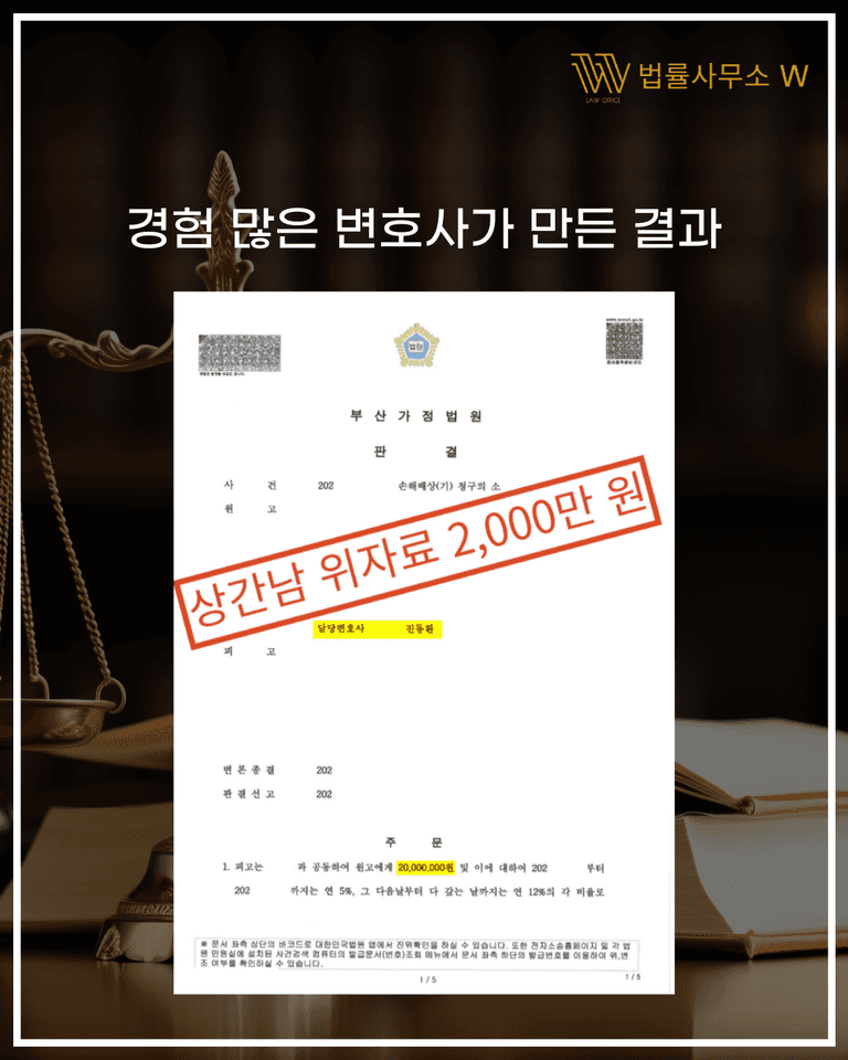 위자료로 2천만 원이 인정되었고, 이는 상간소송에서도 상당한 금액으로 평가됩니다.